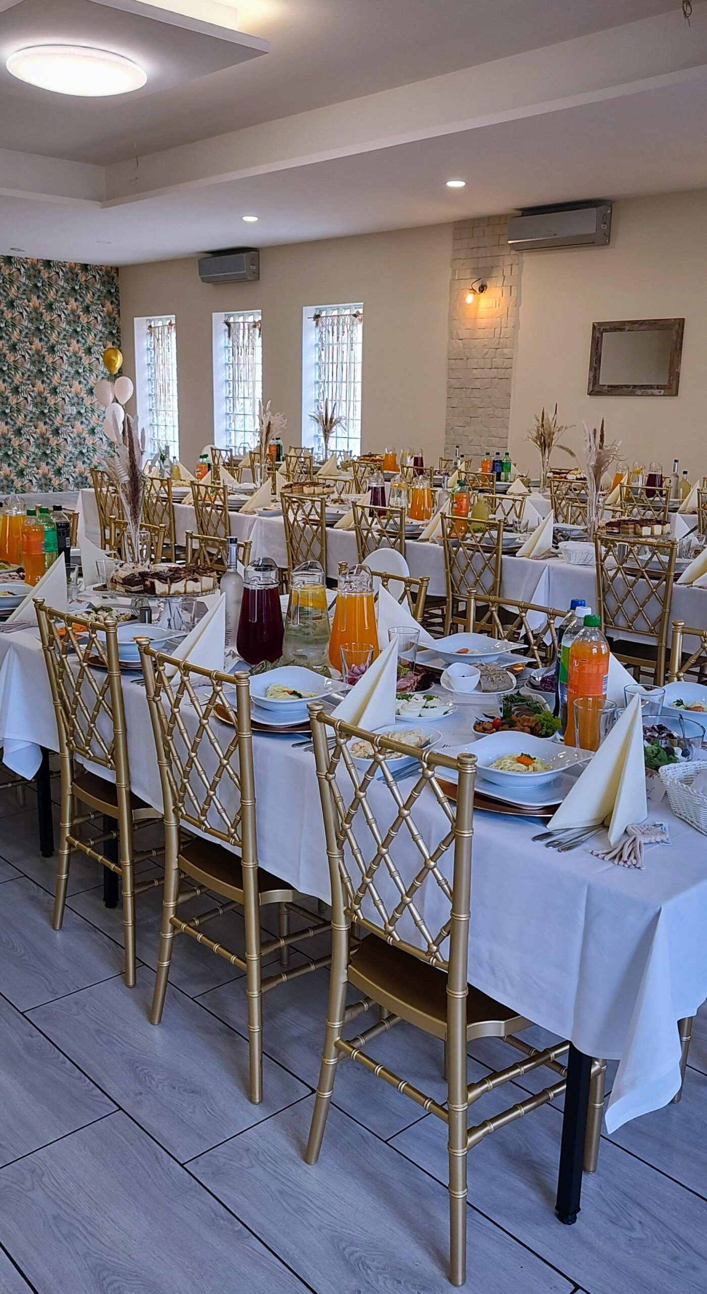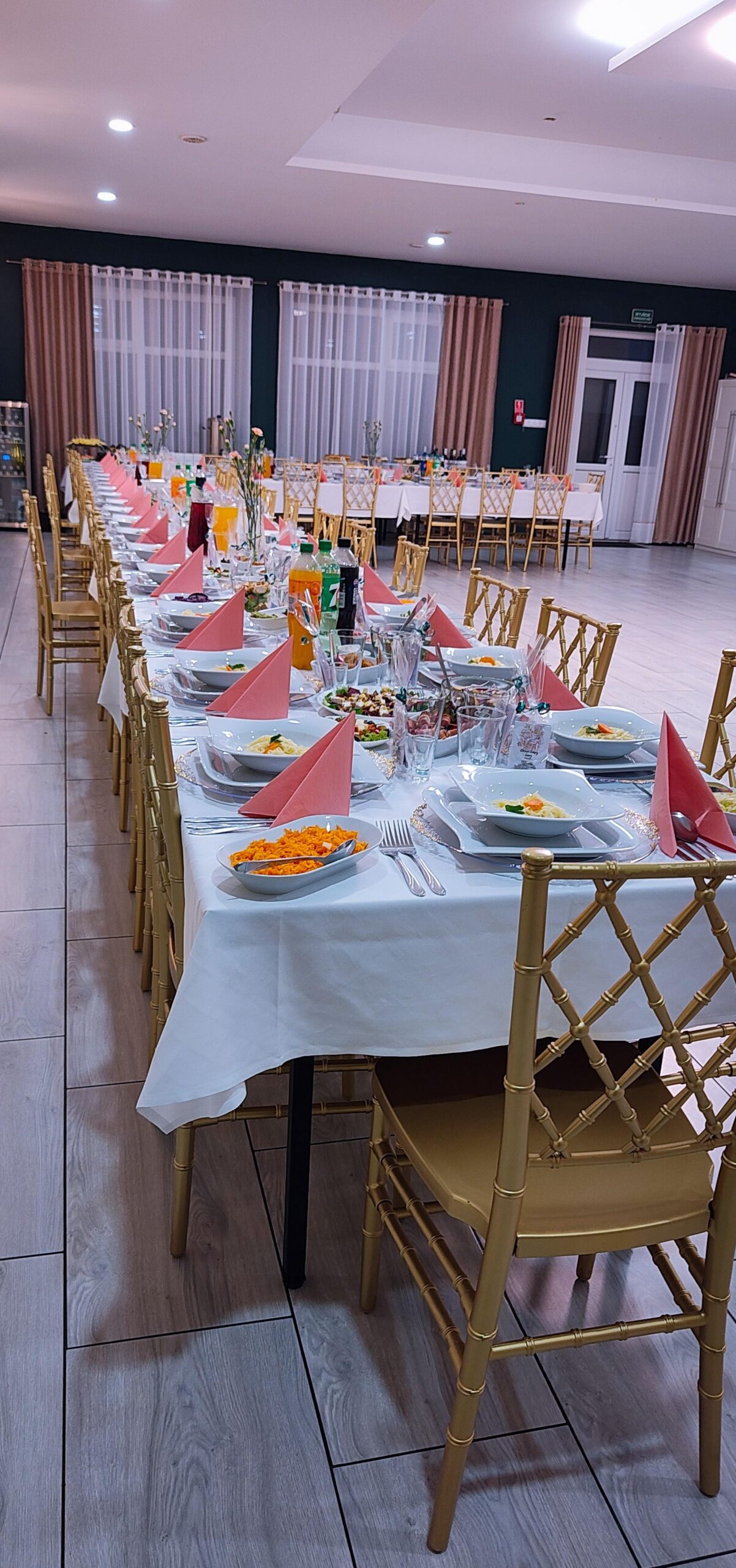 W naszej sali bankietowej organizujemy różnego rodzaju przyjęcia – wesela, chrzciny, komunie, jubileusze oraz konsolacje. Zapewniamy kompleksową obsługę i starannie skomponowane menu, dopasowane do charakteru wydarzenia. Do dyspozycji gości oddajemy elegancką, przestronną salę oraz profesjonalne zaplecze gastronomiczne.