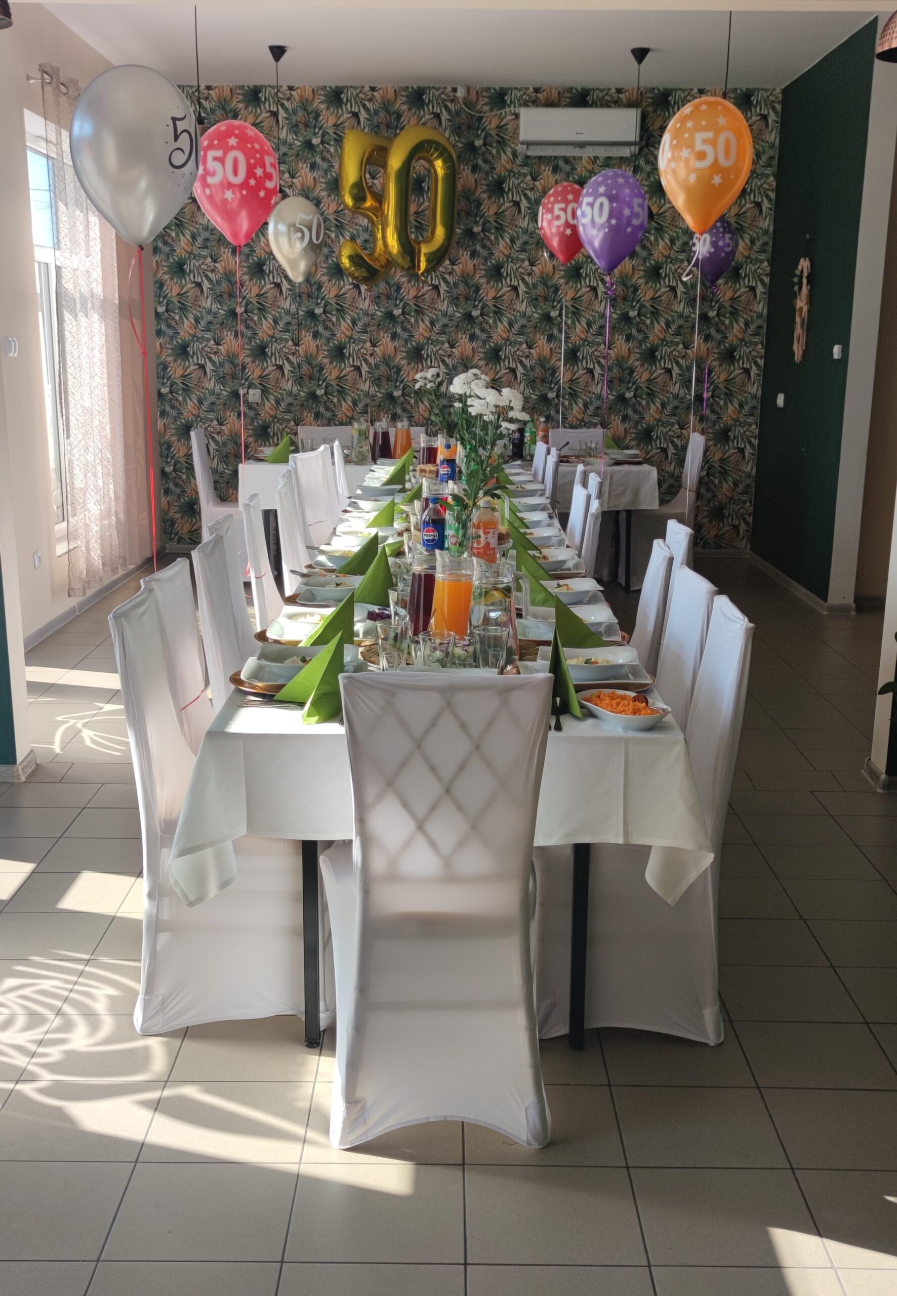 Zapraszamy Państwa serdecznie do organizacji imprez okolicznościowych w naszej sali bankietowej! Każde przyjęcie dostosowujemy indywidualnie do potrzeb klienta. Posiadamy dwie sale. Duża do 100 osób i mniejsza sala do max 40 osób. Minimalna liczba osób dla organizacji przyjęci to 25 osób dorosłych. Dla Waszych pociech przygotowaliśmy piękny ogród z placem zabaw. Całkowicie zamknięty oraz monitorowany teren pozwala naszym gościom czuć się bezpiecznie.